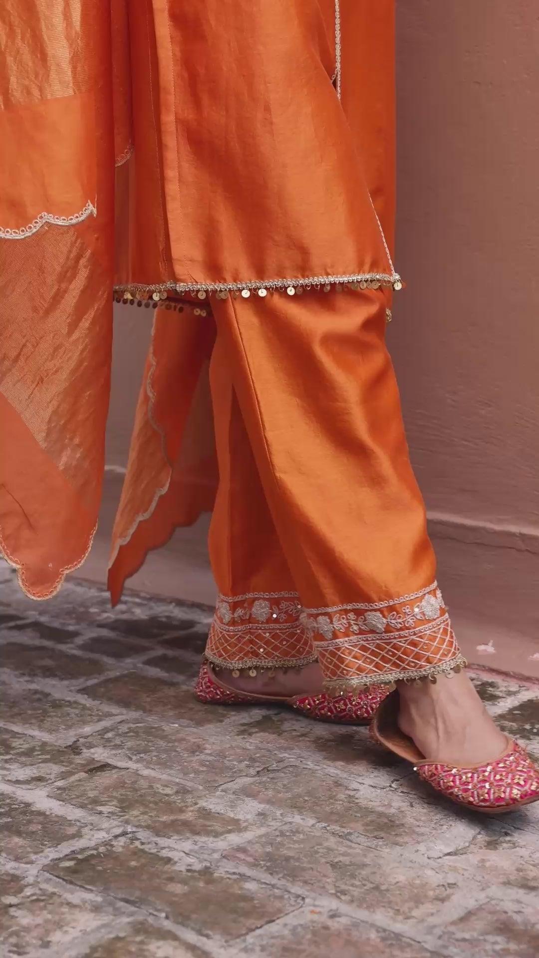 Falak Silk Chanderi Embroidered Orange Straight Kurta Set Sale price ₹17,950