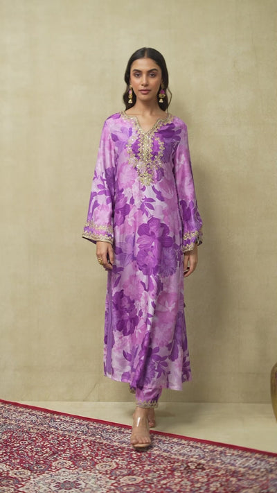 Lily Lilac Floral Printed Hand Embroidered Silky Modal Kaftan Set