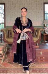 SANJANA BATRA IN ANOKHI BLUE SILK VELVET HANDCRAFTED KURTA SET Sale price ₹26,450